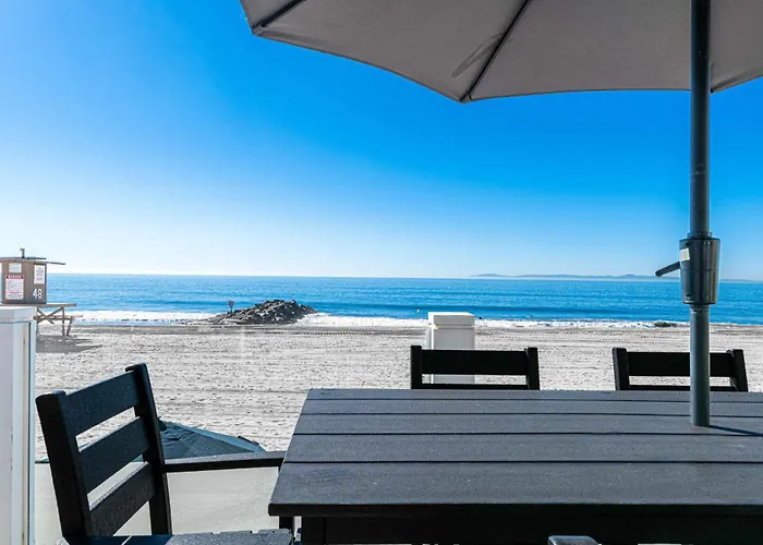 Situada a uma distância de 7 km de Downtown Huntington Beach, 3Br Oceanfront Home W Balcony Right Over The Sand By Beachview Rentals Newport Beach à beira-mar convida os hóspedes a relaxar num terraço.